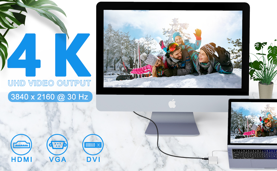 - 📺【SUPPORT 4K UHDRESOLUTION】 - High definition make your video experience like immersive and enjoy in it.You can extend or mirror the computer screen to a large screen display or projector, set up duplication (mirroring) for Windows or Mac system.The USB C to HDMI Adapter supports (4K * 2K) at 3840 *2160P /30Hz; backwards compatible to 1080P and 720P.