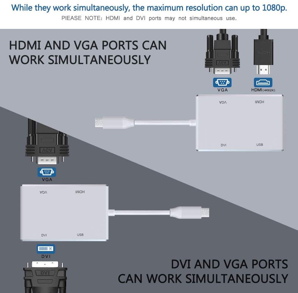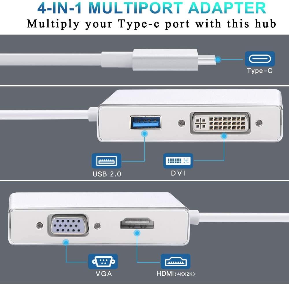 4 in 1 USB Type C to HDMI VGA DVI USB Multiport Adapter for connecting MacBook to HDMI/ VGA/ DVI-equipped monitor