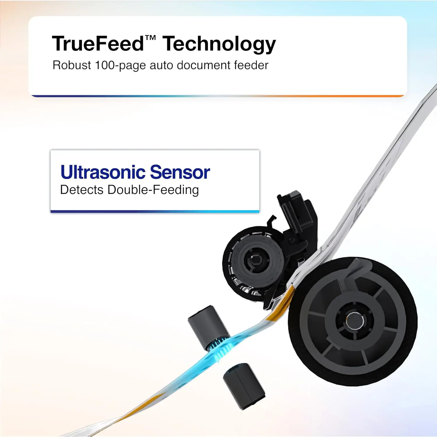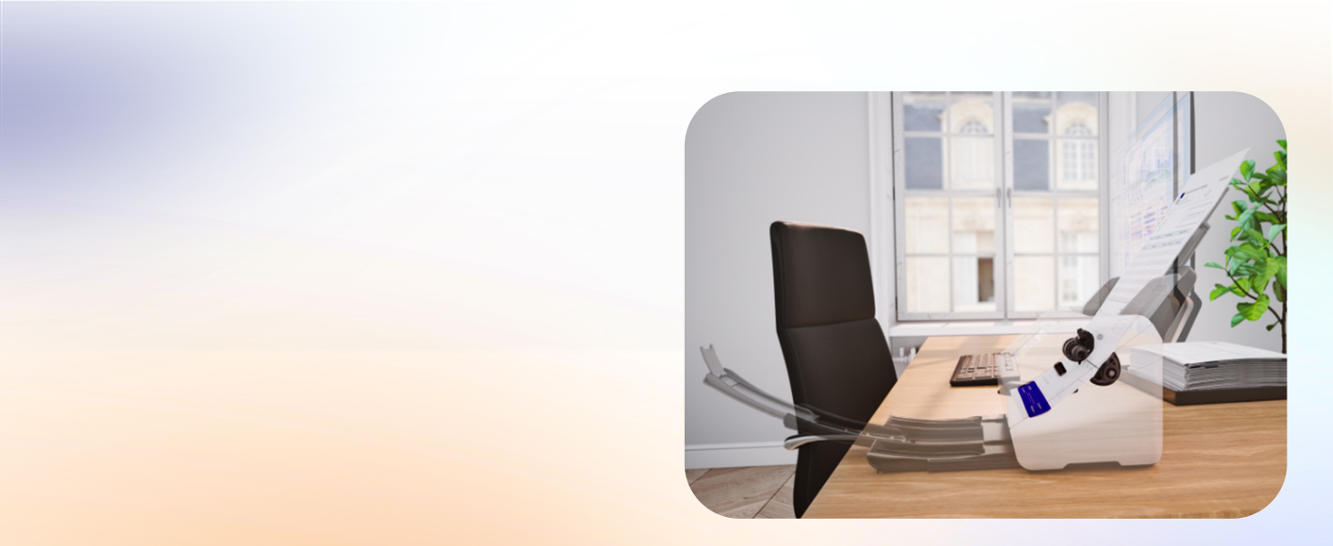 100-page ADF with paper skew & staple protection reliably feeds stacks of various sized documents