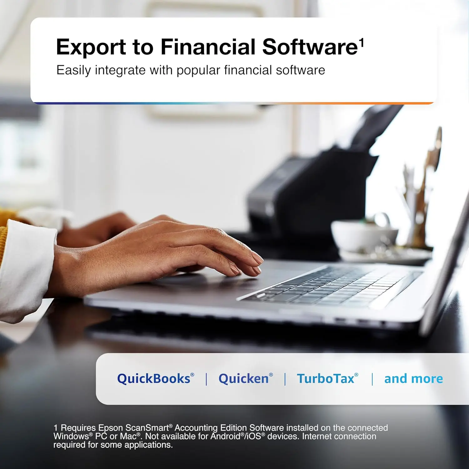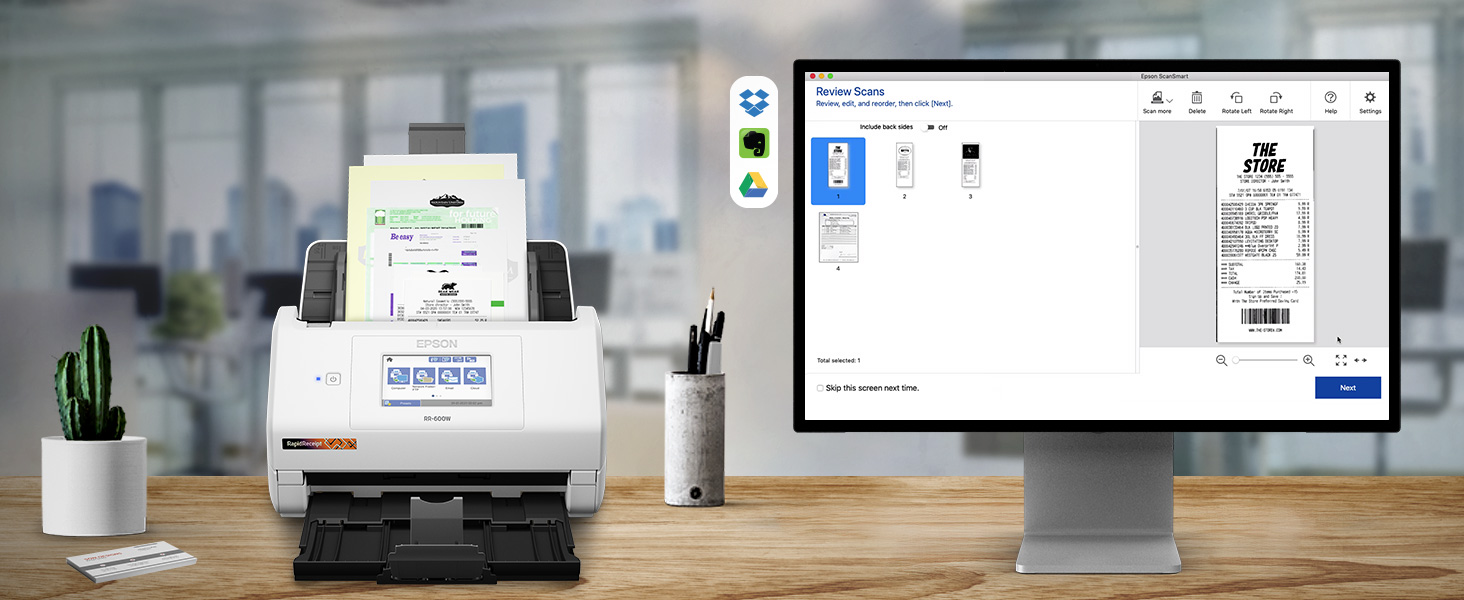 Unleash the power of AI¹ with the Epson RapidReceipt RR-600W dedicated business scanner.